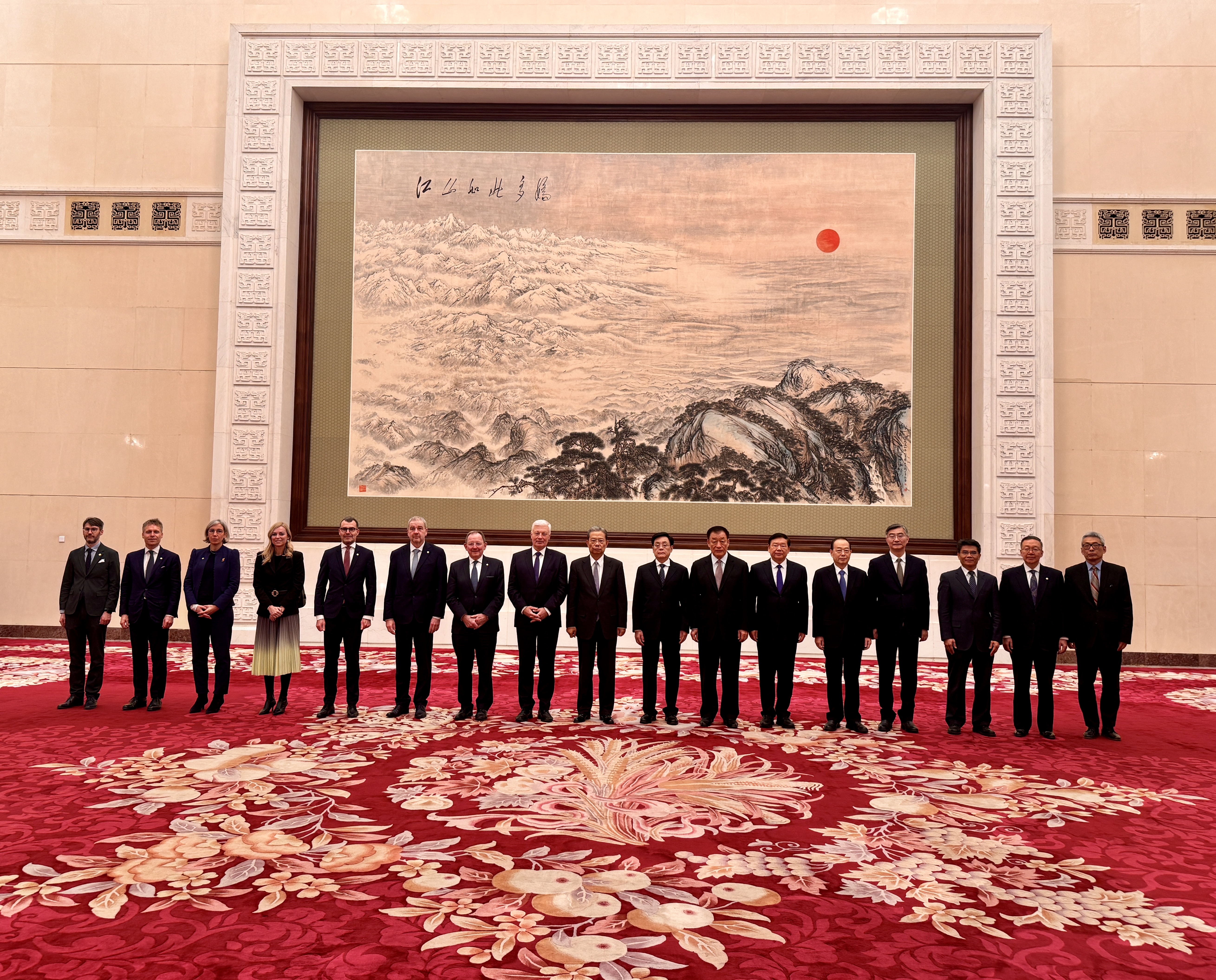 La délégation luxembourgeoise et le Président du Comité permanent de l'Assemblée nationale populaire de Chine (APN), ZHAO Leji.
