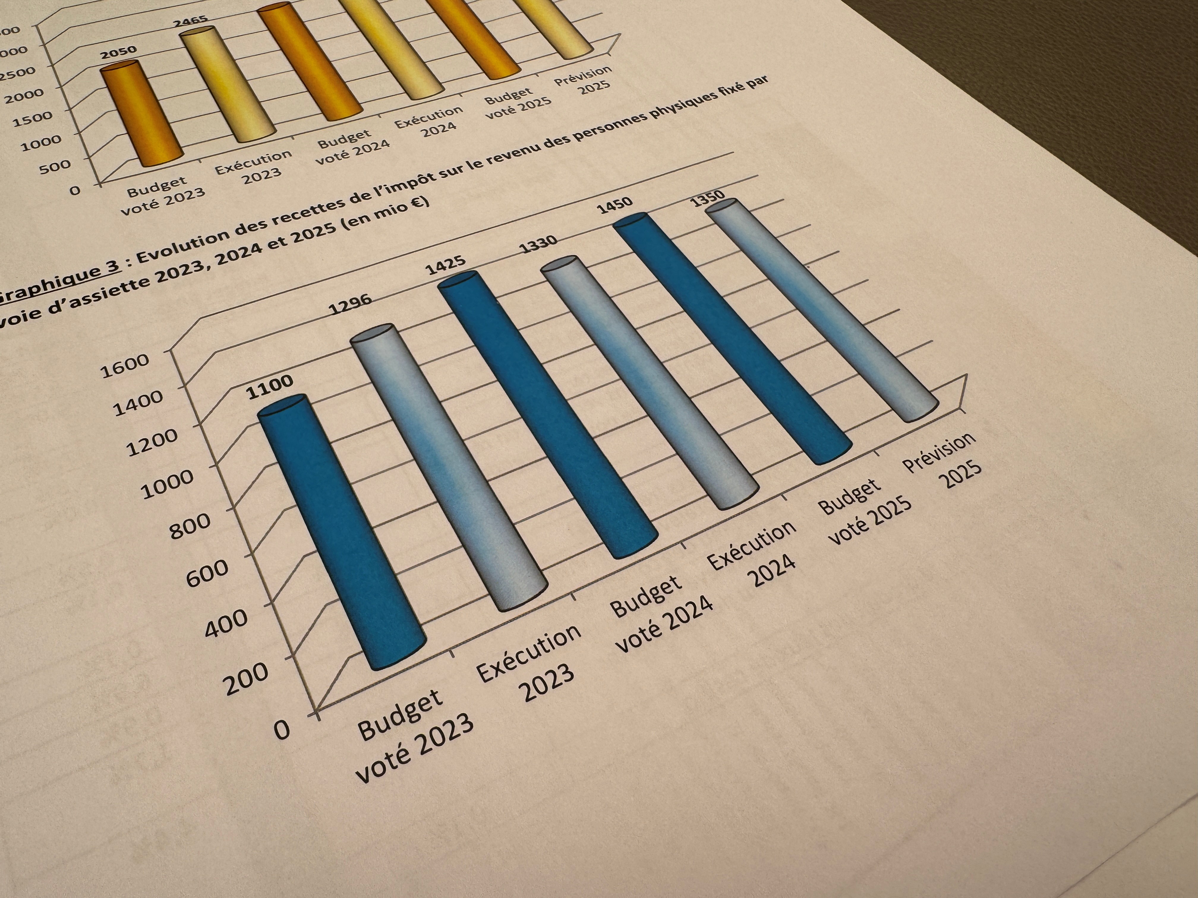 Si l’on constate une certaine stagnation du montant des impôts directs de 2024 à 2025, cela s’explique – selon le directeur de l’administration compétente – par des mesures législatives, comme par exemple une adaptation du barême à l’indice des prix. En même temps, l’administration prévoit une hausse des recettes : si le projet de budget pour 2026 prévoit des impôts directs à hauteur de 15,14 milliards d’euros, les recettes sont estimées à 17,85 milliards d’euros pour l'année 2029.