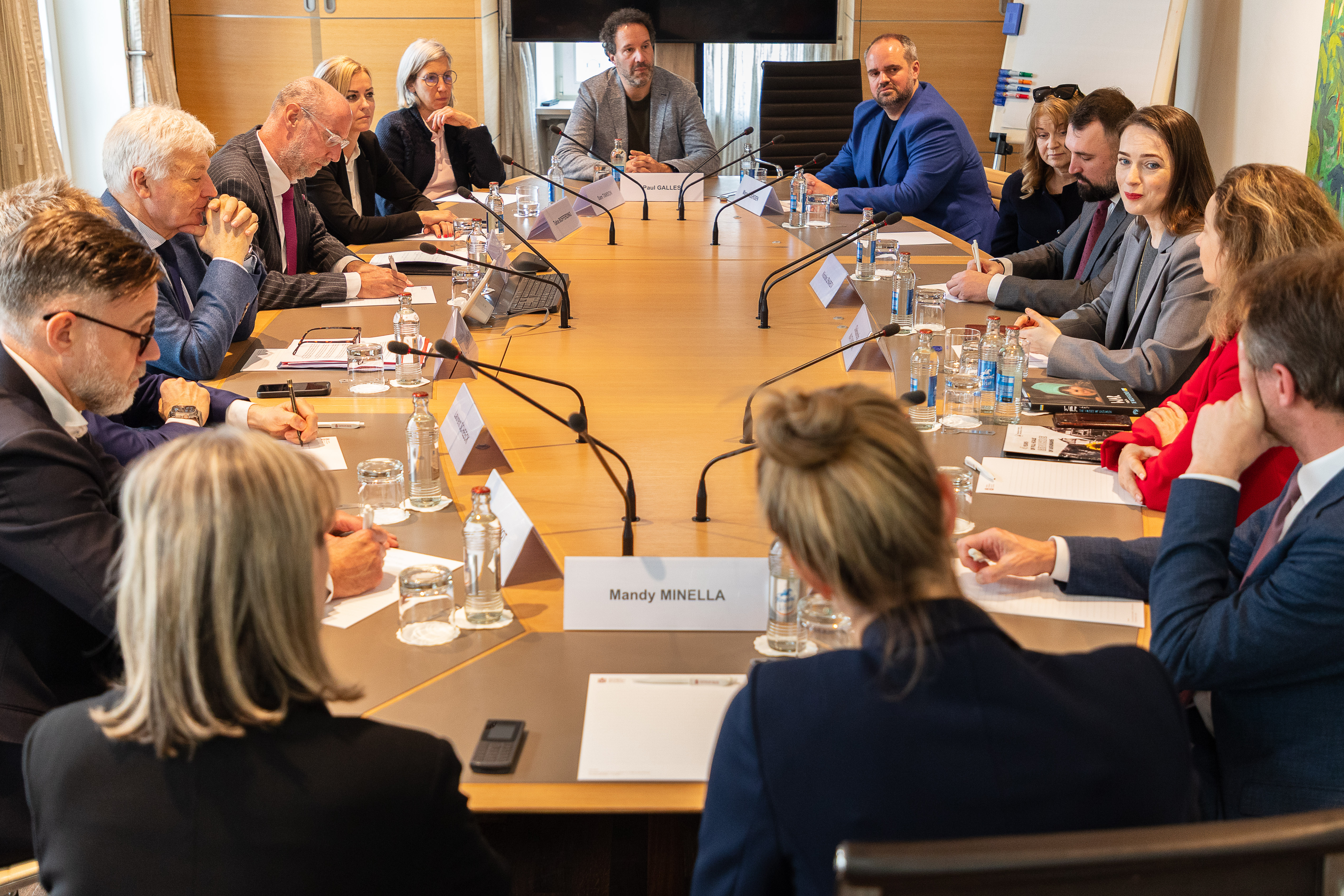 La justice et la lutte contre l'impunité ont également été au cœur de l'échange de vues. Oleksandra Matvïïtchouk a souligné la difficulté d'exercer le métier d'avocate des droits humains dans un contexte « où le droit ne fonctionne plus ». Elle a mis en avant l'importance de son initiative « Tribunal pour Poutine », qui vise à documenter les crimes internationaux commis par la Russie sur l'ensemble du territoire ukrainien, en vertu du Statut de Rome de la Cour pénale internationale. Interrogée par un député sur la manière de réagir face au non-respect du droit international, elle a appelé à abandonner l'idée qu'il faudrait attendre la fin d'une guerre pour engager des poursuites judiciaires.