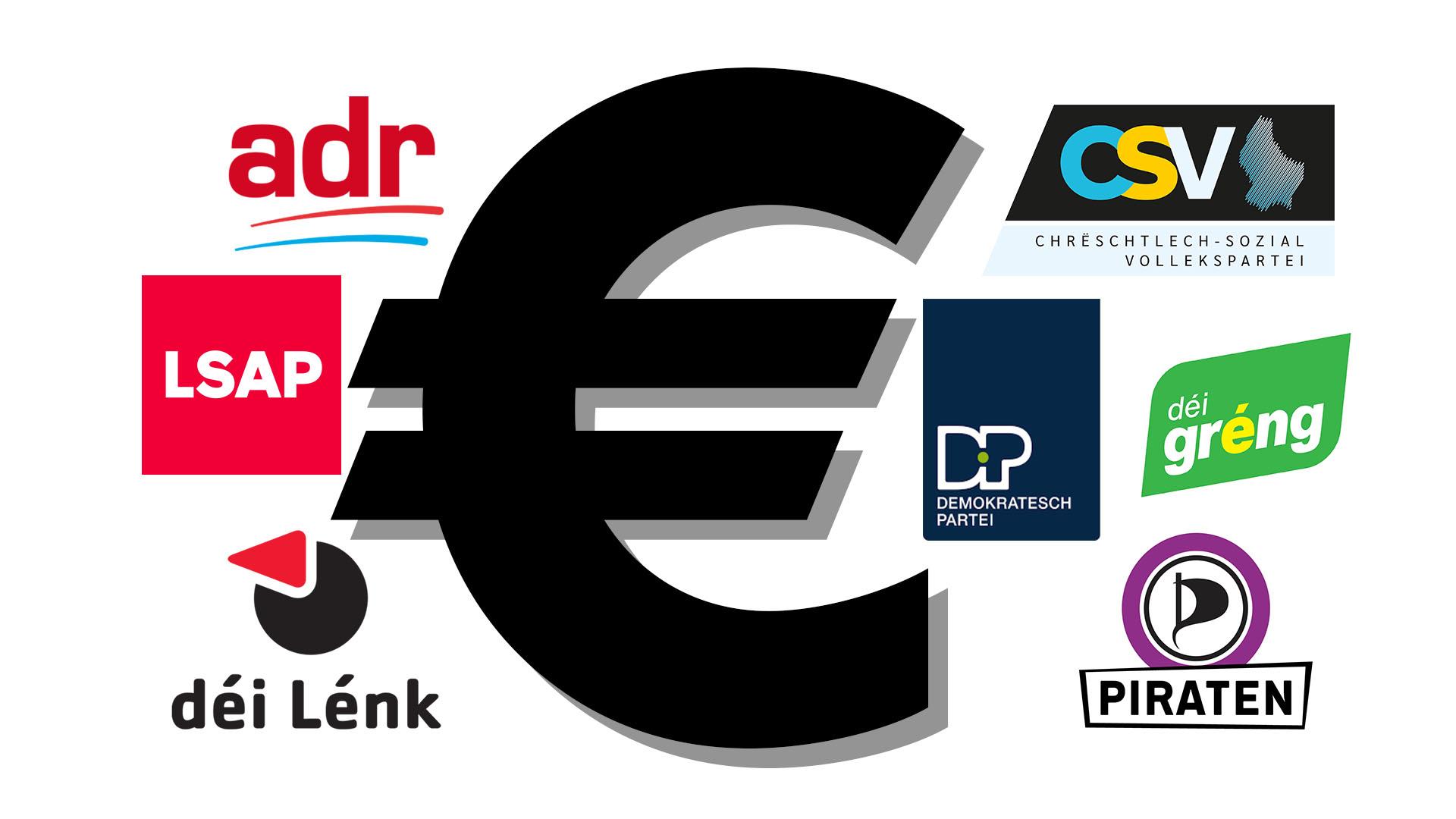 - La dotation de l’État ne doit pas dépasser le seuil des 80% des recettes des partis. À titre d’exemple, les dotations allouées en 2022 vont d’une somme d’environ 243'000 euros pour déi Lénk jusqu’à 884'000 euros pour le CSV.