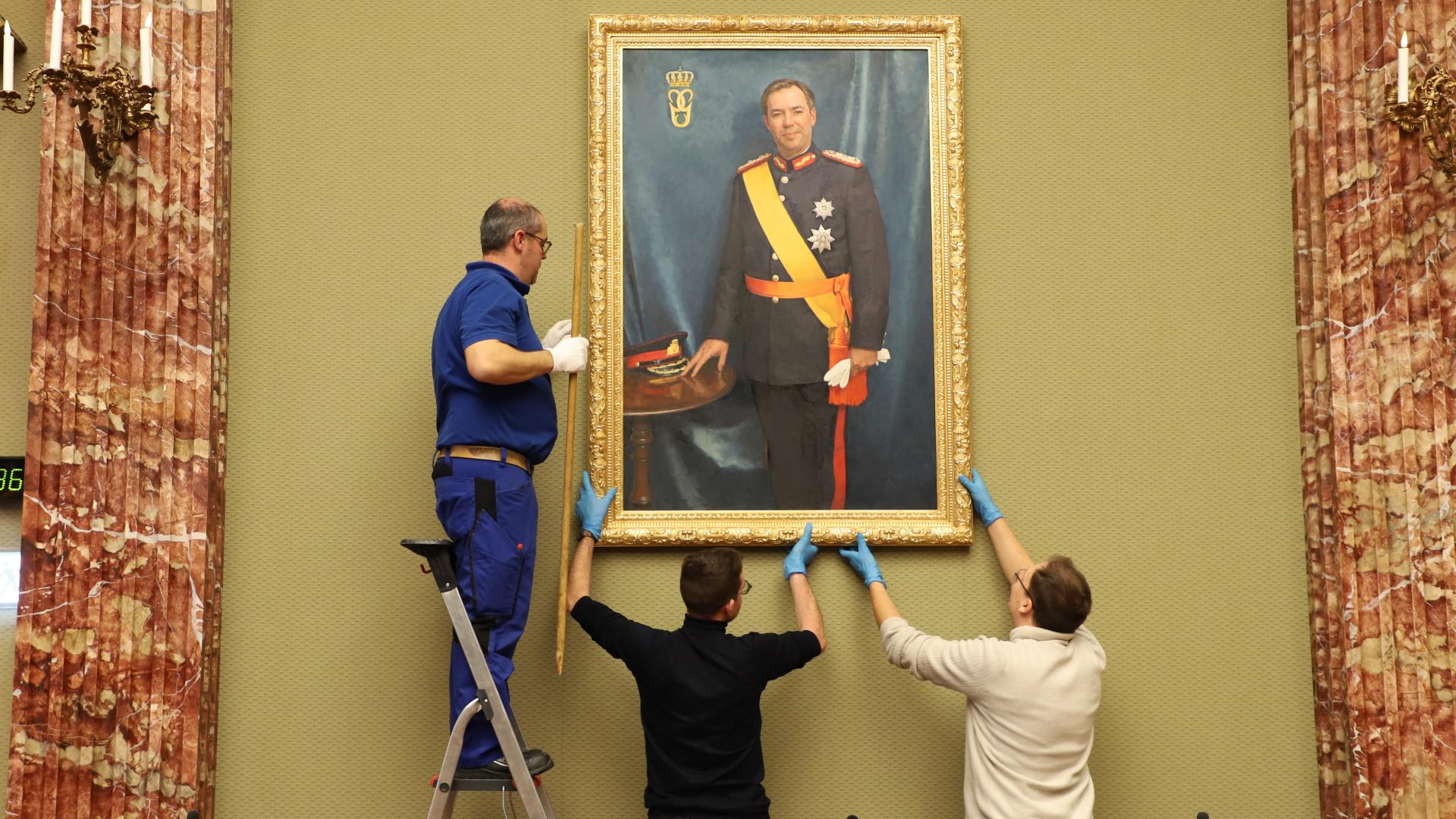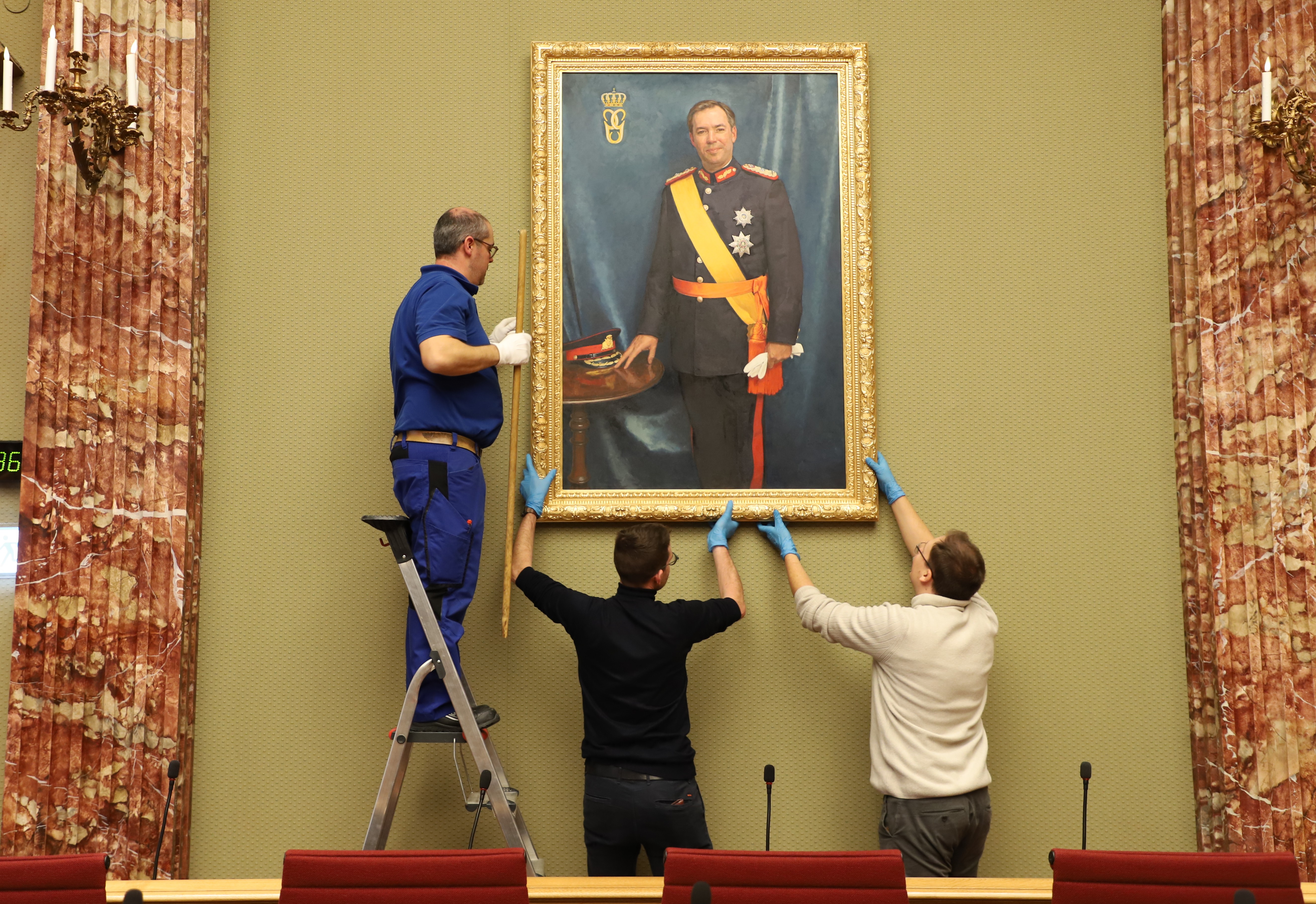 Les équipes de la Maison du Grand-Duc ont installé le nouveau portrait en salle plénière.
