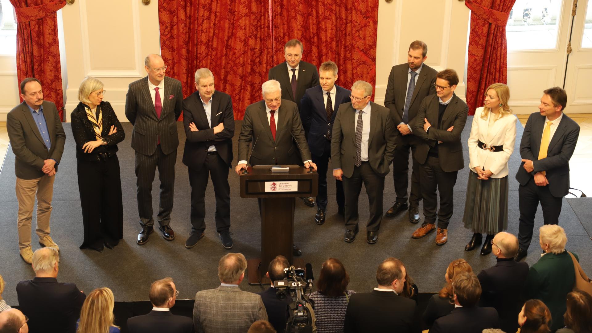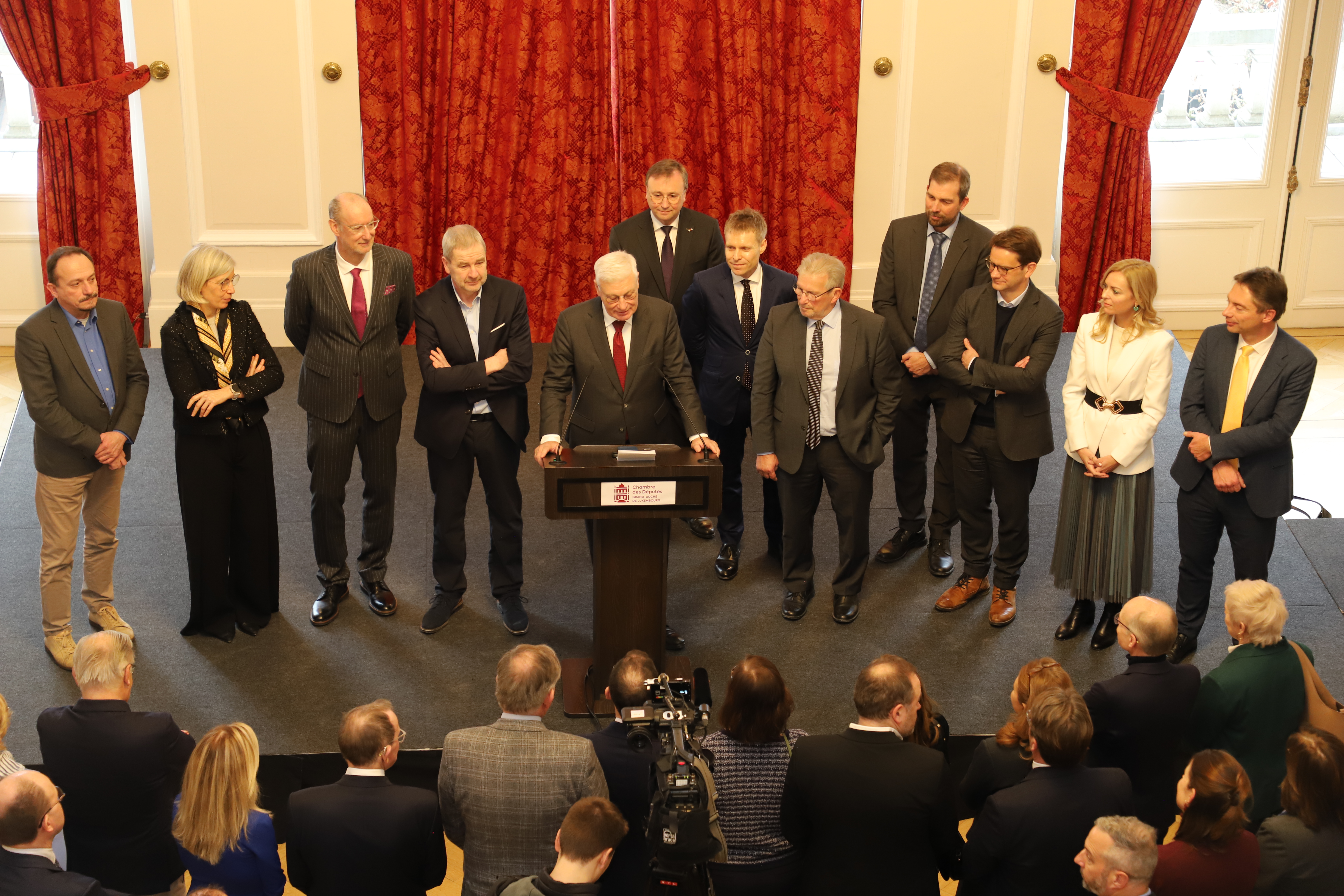 Parmi les invités figuraient le Premier ministre Luc Frieden et la Ministre en charge des relations avec le Parlement Elisabeth Margue, la maréchale de la Cour, des députés européens, des membres du corps diplomatique, des représentants de la magistrature, du Conseil d’État, de la presse. Les représentants des organes rattachés au Parlement comme l’Ombudsman, l'Ombudsman fir Kanner a Jugendlecher ou la Cour des comptes, les partenaires de la Chambre comme le Zentrum fir politesch Bildung (ZPB) ainsi que les agents de l'Administration parlementaire ont également répondu présents à l'invitation.