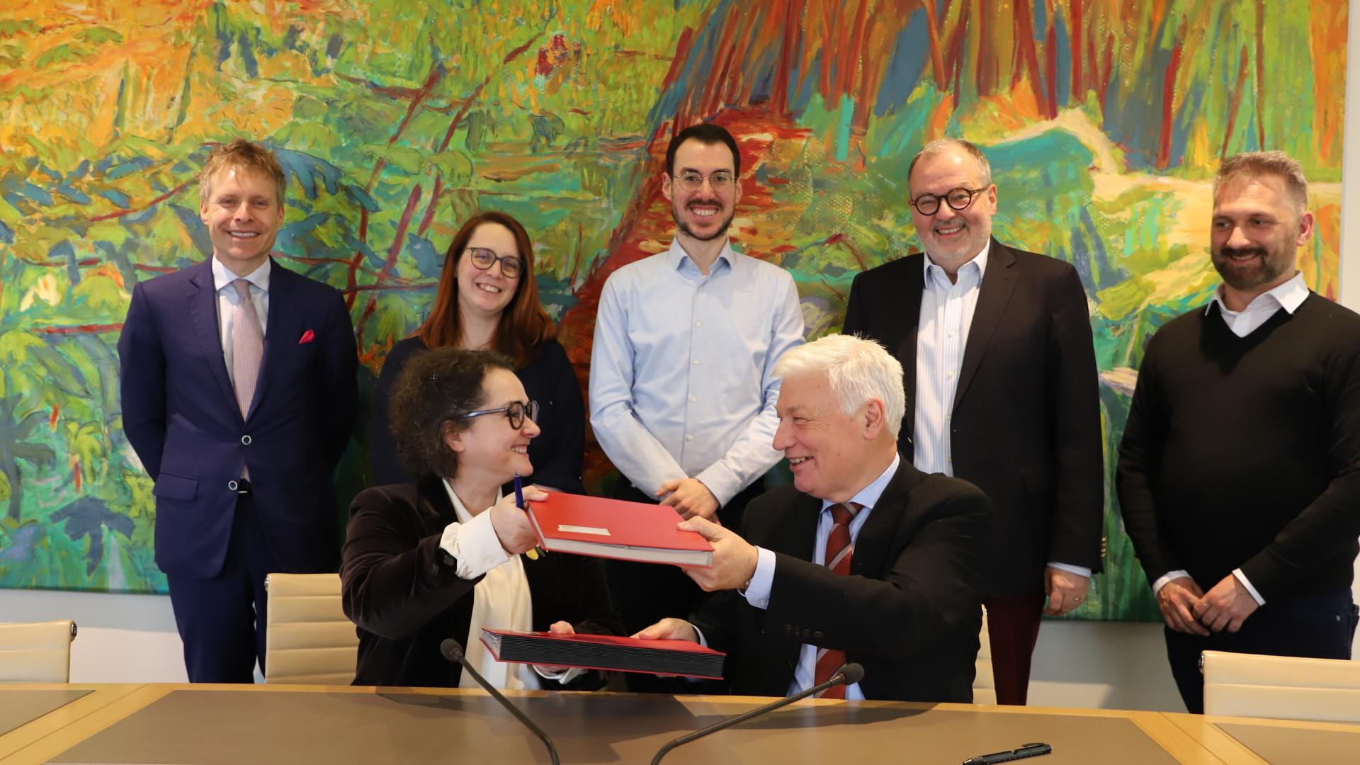 Le Président de la Chambre des Députés, Claude Wiseler, et la Directrice du Musée national d'archéologie, d'histoire et d'art (MNAHA),Tania Brugnoni, ont signé une Convention en vue de l'exposition qui sera organisée dans le cadre du 160ᵉ anniversaire du Traité de Londres de 1867 et de la Constitution de 1868.